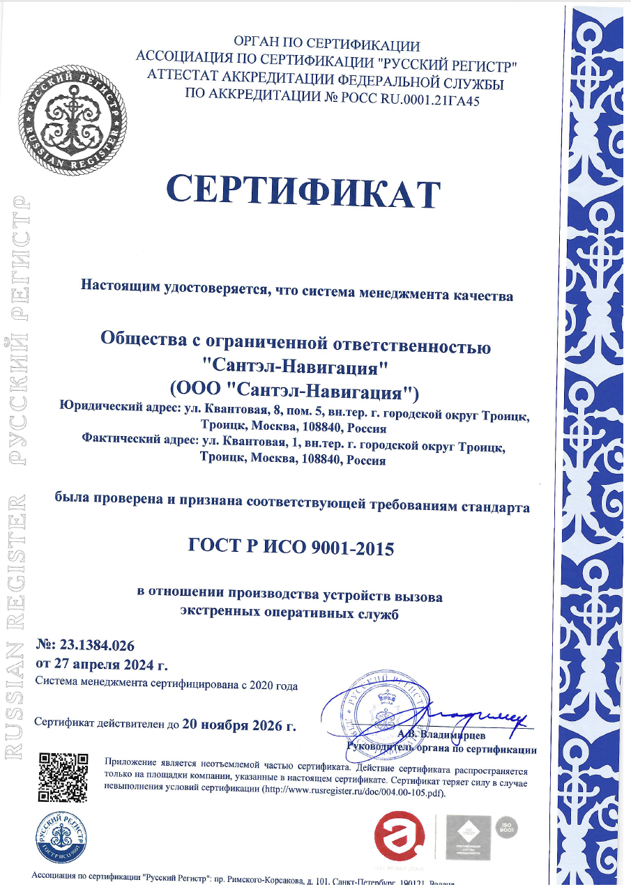ООО «Сантэл-Навигация» является производителем профессионального навигационного оборудования, работающего в стандартах GPS/ГЛОНАСС, устройств вызова экстренных оперативных служб, предназначенных для работы в ГАИС «ЭРА-ГЛОНАСС».
